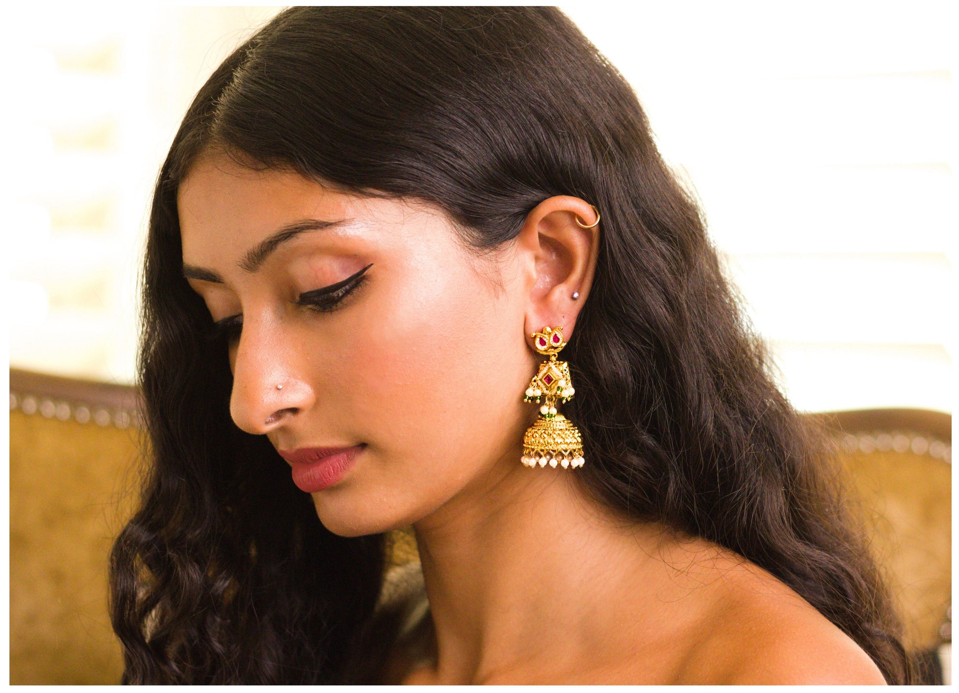 Temple Inspired Ruby Dainty Paisley Jhumkas