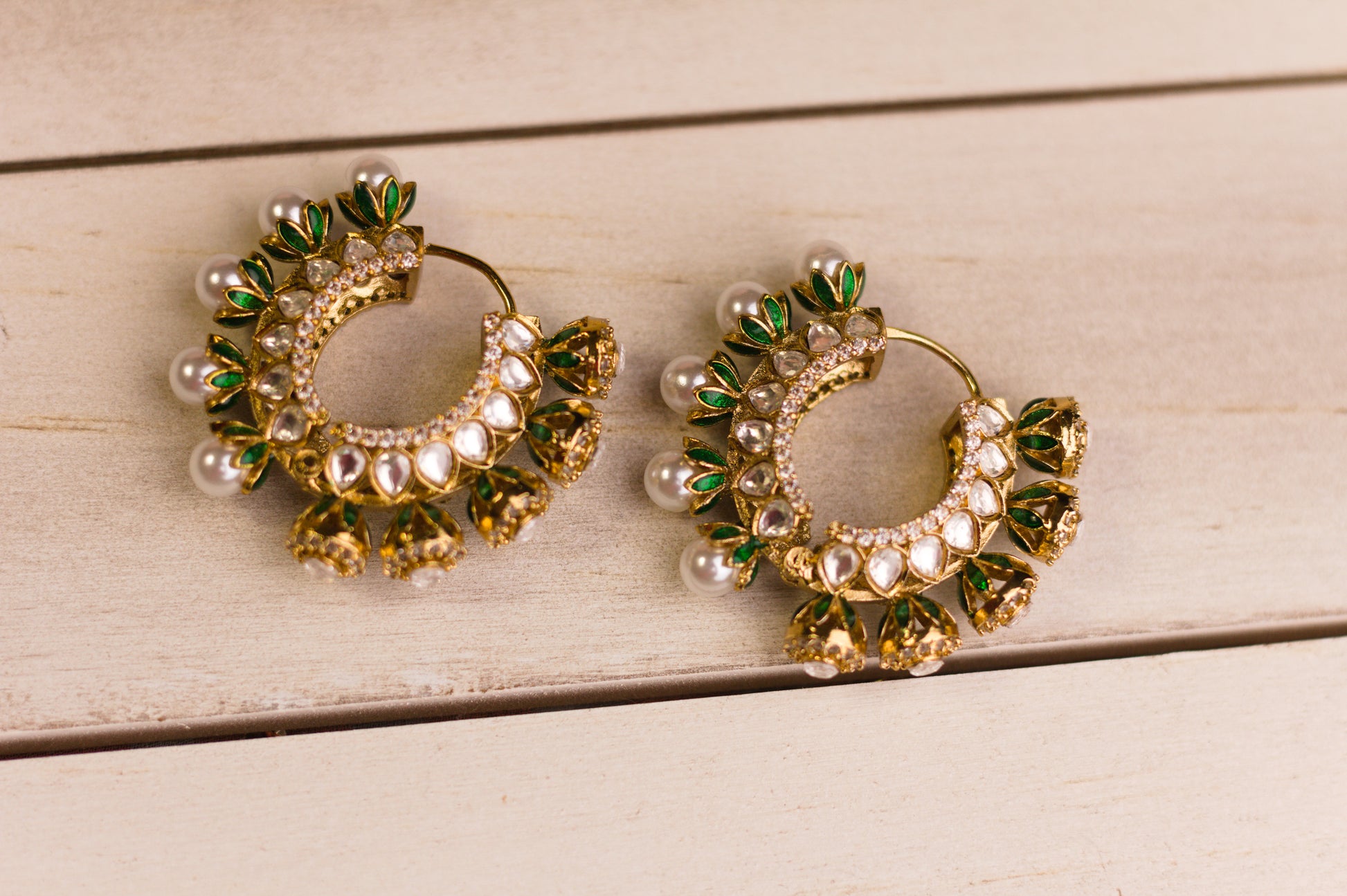 Reversible Green Meena Pearl and Stone Hoop Earrings