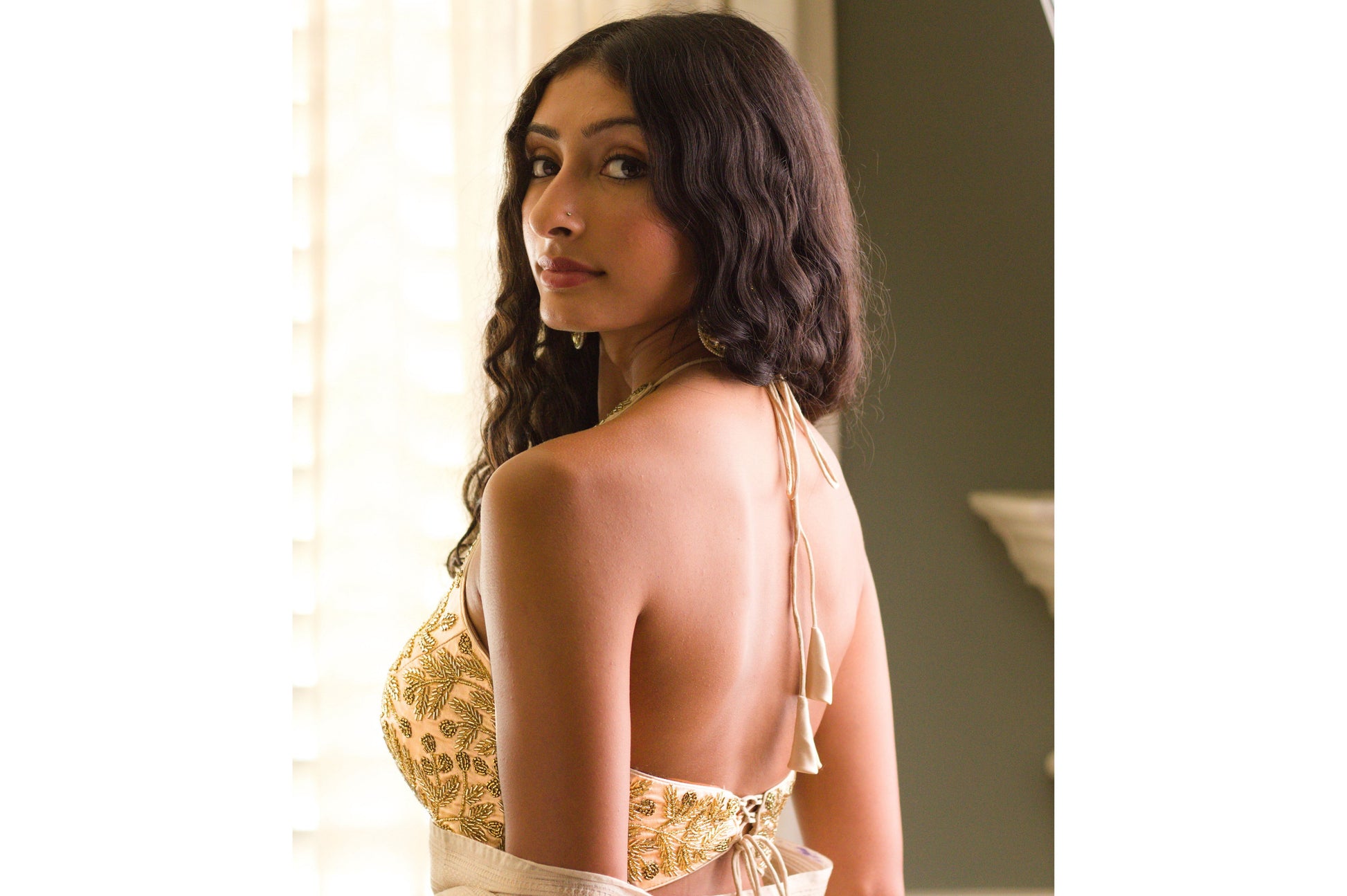 Fully lined with light padded reinforcement to support the intricate beadwork while maintaining comfort and form. The cropped silhouette pairs seamlessly with high-waist lehengas, sarees, or skirts—offering modern balance and polish.