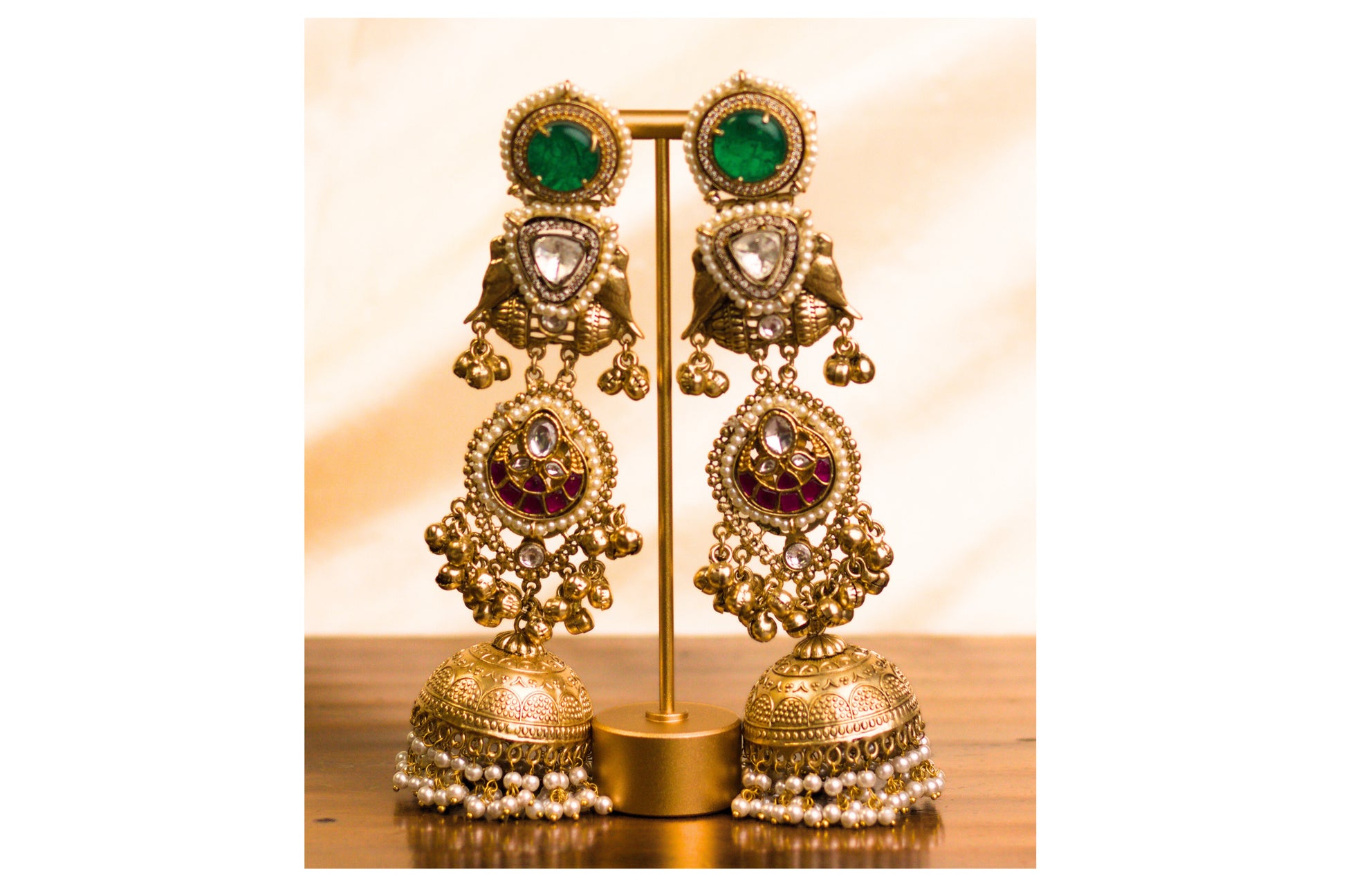 A perfect pick for weddings, festive celebrations, or bold contemporary styling, these jhumkas deliver the ideal blend of drama, elegance, and versatility—a true statement accessory for the modern wardrobe.