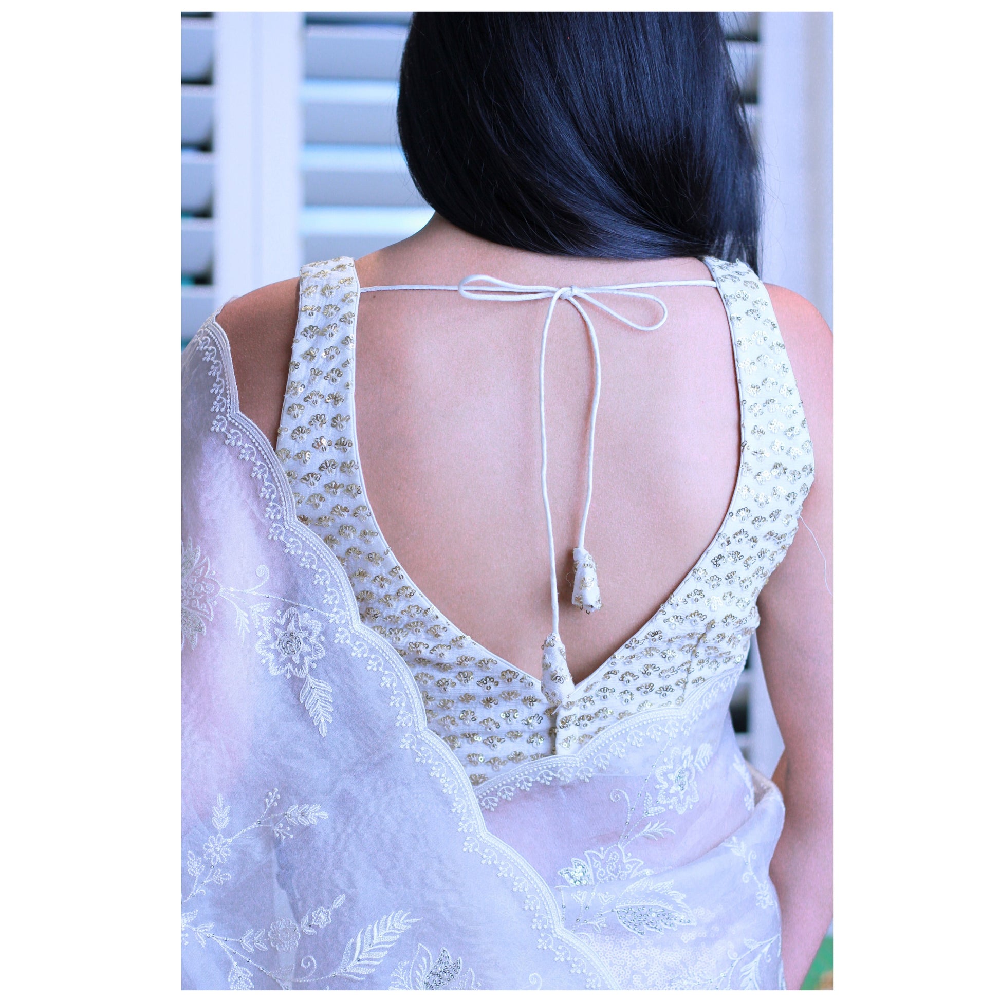 Ivory Sequin Detail Saree Blouse / Size 36